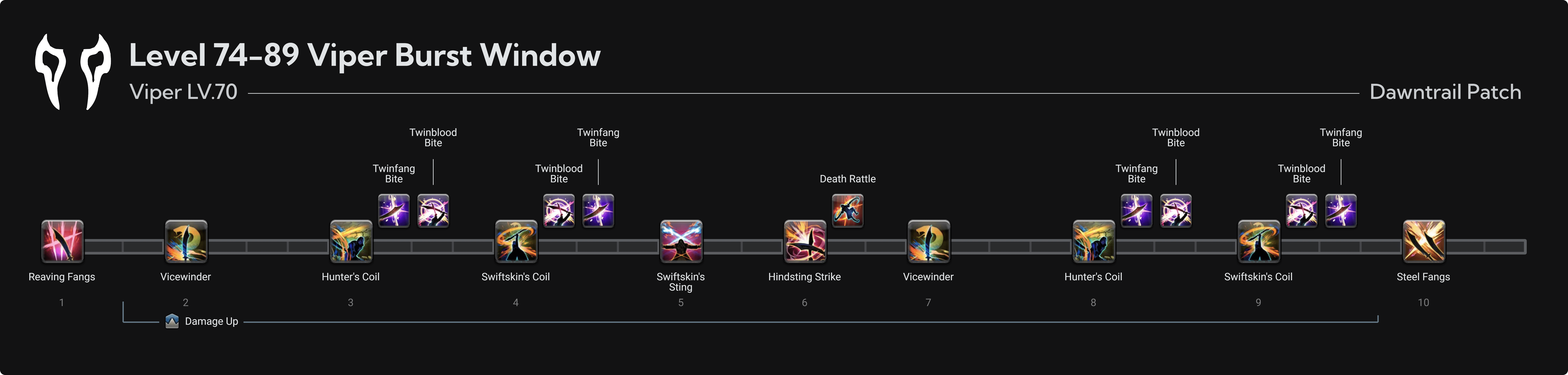 Viper’s multi-target rotation is fairly identical to its single-target rotation. Both the standard combo and the Vicewinder combo have an AOE variant that follows similar logic as their single-target counterparts. So outside of swapping to the AOE variants in multi-target scenarios Viper has no other multi-target optimization.