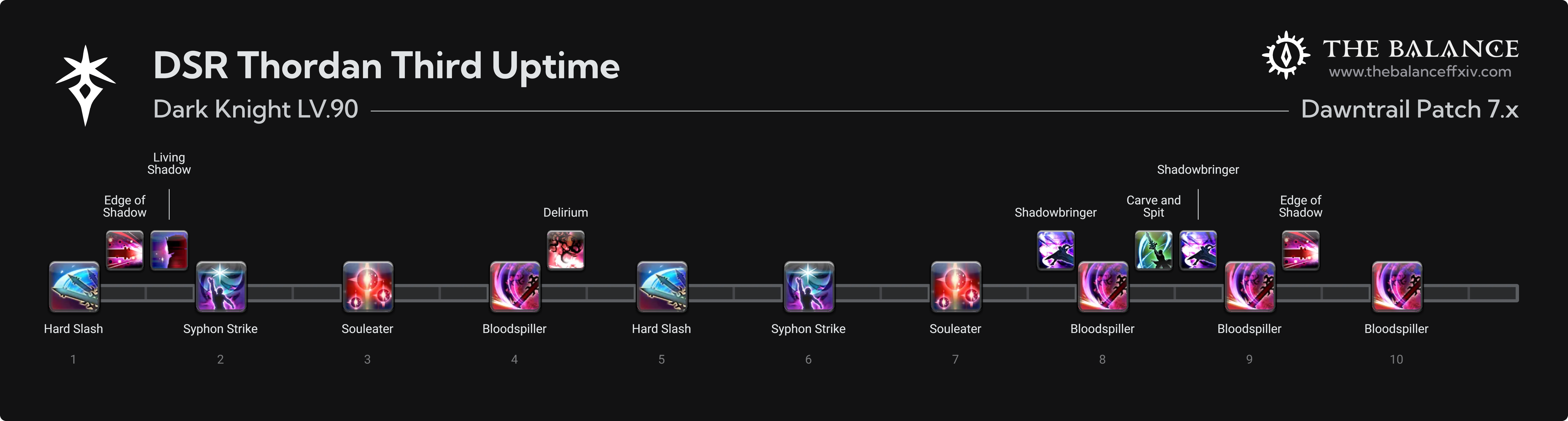 Depending on your ping, Salted Earth may come up slightly later in your GCD roll; do not clip to use it, or you will likely lose a GCD in the phase. The last Syphon Strike needs either a 2.45 GCD speed or for your co-tank to pull the boss off-center, slightly lengthening the phase as it takes time to move back mid.